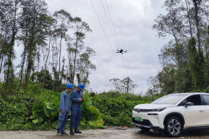 10月6日清晨,陆川供电局组织无人机小组对受灾线路进行无人机勘灾,精准定位故障点。陈阳钟摄