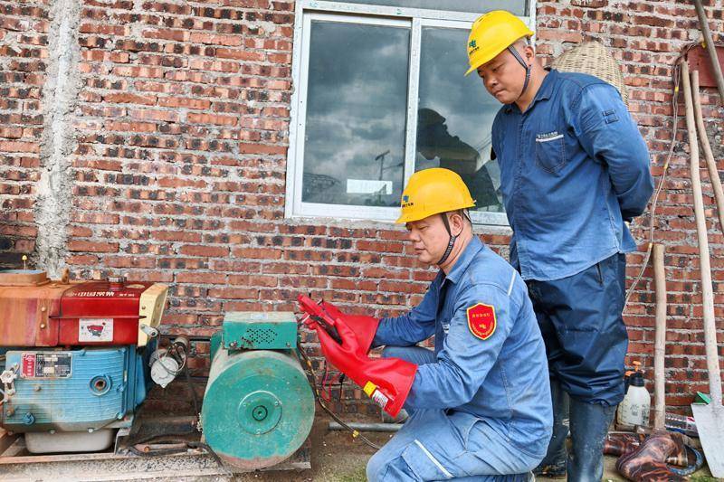 同时,各供电所迅速开展客户服务,主动走访服务受灾用户。在大桥镇,10千伏街Ⅰ线王沙公变区域因强风发生停电故障,导致周边自然村供电中断。党员服务队队长黄燕萍立即带领队员赶赴现场,在抢修工作开展的同时,特别注重做好群众安抚工作。“各位乡亲,我们已经调来了应急发电机,抢修人员正在全力排查故障,很快就会恢复送电。”黄燕萍一边耐心解释,一边细心观察村民们的情绪变化。服务队队员吴振权则带着便携式充电设备,穿梭在村民中间,不仅提供充电服务,还细致地告知抢修进度:“现在故障点已经找到,预计两小时内就能恢复供电,请大家稍作等待。”