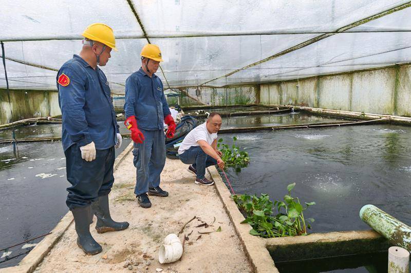 另外,在古城镇上大岭公变区域,青年突击队叶家富班长冒着细雨为观赏鱼养殖户陈老板检查用电设备,及时处理线路隐患,为特色养殖业提供了可靠电力保障。“这些观赏鱼苗价值上百万元,最怕停电氧气供应不了,你们来了我就放心了!”陈老板连声道谢。